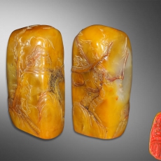 薄意浅浮雕田黄冻印章(小松)款