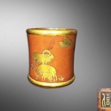 紫铜鎏金三阳开泰笔筒