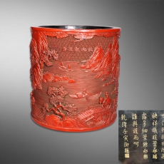听松观瀑图剔红大笔海