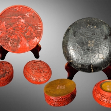 漆雕盘 印泥盒一组(剔红)