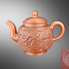 贡局款 满雕龙原矿紫砂壶