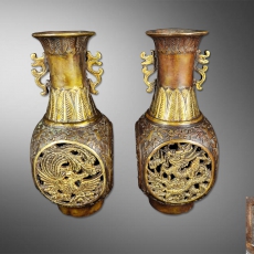 乾隆龙凤镂空铜花瓶一对