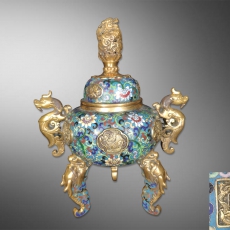 鎏金双龙耳三足景泰兰香炉