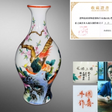 王国喜 霁彩珐琅锦上添花橄榄瓶