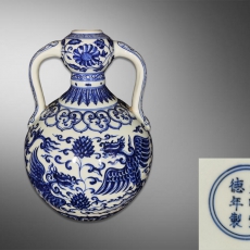 青花凤穿牡丹缠枝花卉蒜头双耳瓶